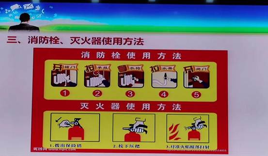 李俊老师从学生人身安全、财产安全、交通安全、消防安全等方面进行详细的举例说明。他强调,同学们在校园要注重火灾预防,明确遇到火灾时救人第一原则和先控制后消灭的原则,对于宿舍消防安全问题,李俊老师对同学们提出三点要求:严格遵循宿舍规章制度,不得在宿舍内使用大功率和劣质电器,不得生火做饭。在宣讲会中,他根据PPT的流程,向同学们详细讲解了消防栓、灭火器的正确使用方法。